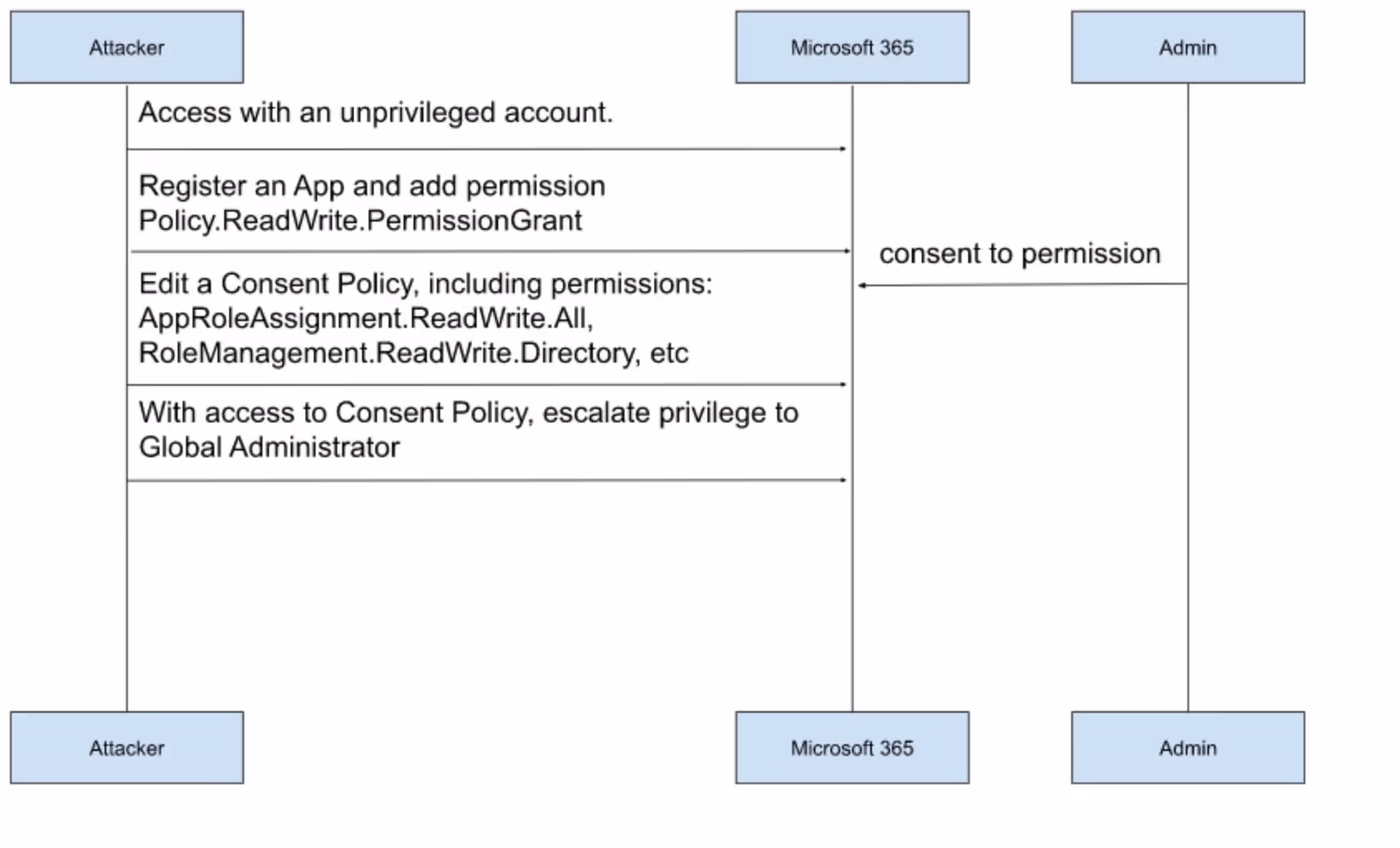 This attack allows a non-privileged user to grant himself the role of Global Administrator of a Microsoft 365 environment. In general, the success of the attack lies in the possibility of a consent request for the AppRoleAssignment.ReadWrite.All permission being consented.