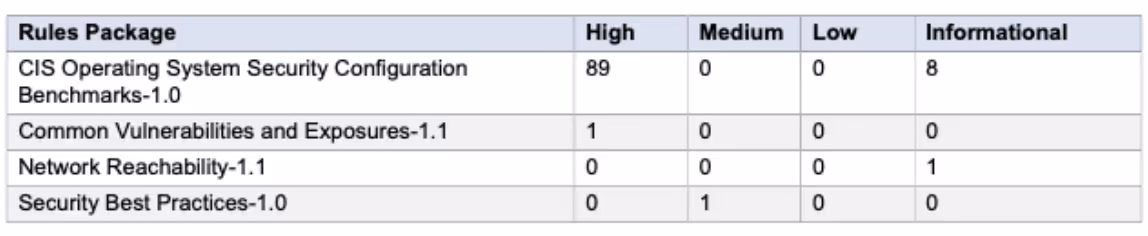 Uma das coisas que nos chamou a atenção foi que a vasta maioria dos testes relacionados ao padrão CIS são categorizados pelo Inspector como High, a classificação máxima de severidade.