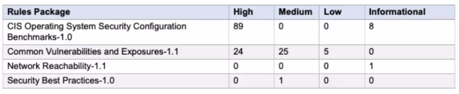 As regras nesse pacote ajudam a verificar se as instâncias EC2 avaliadas estão expostas a vulnerabilidades conhecidas (CVEs) baseados no repositório global da MITRE.